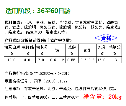 00935猪场保育料(乳猪配合饲料20kg)